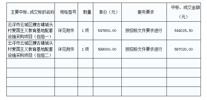 云浮市云城區(qū)腰古鎮(zhèn)城頭村愛國主義教育基地配套設(shè)施采購項目中標公告